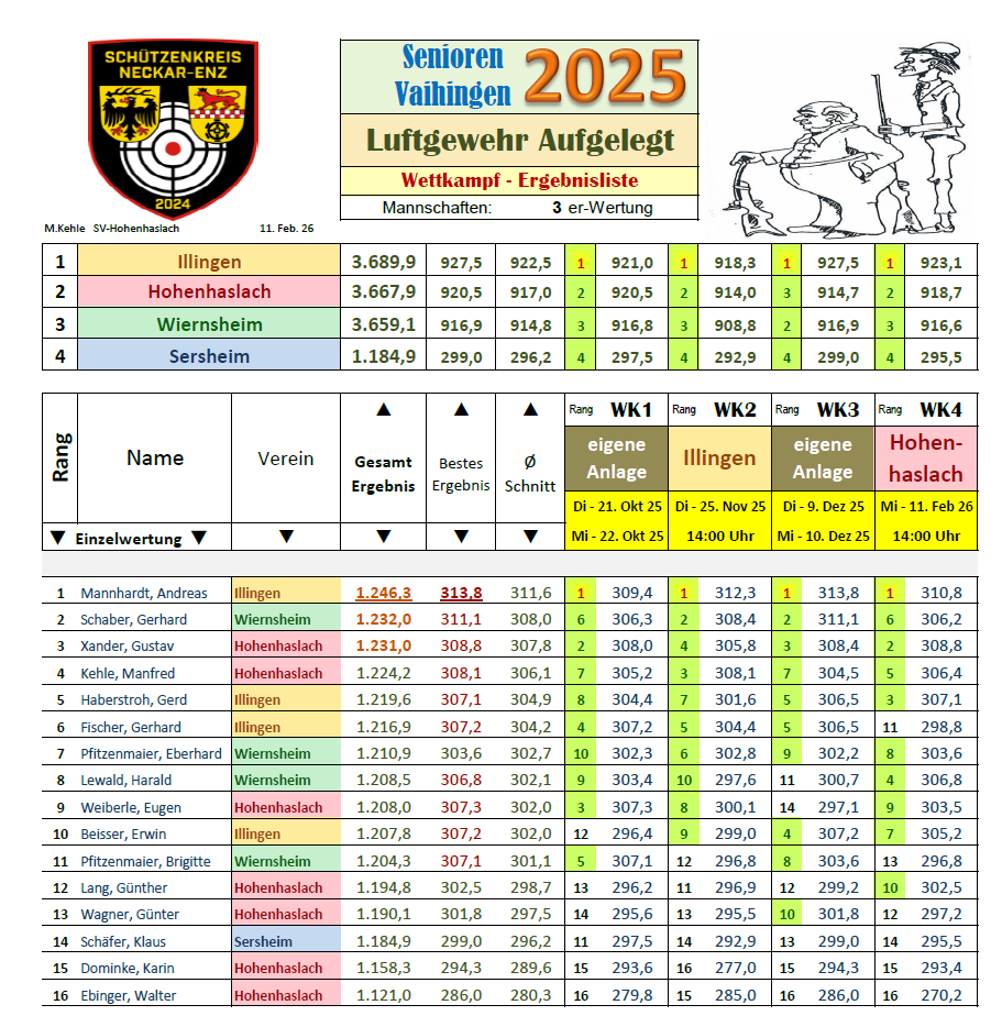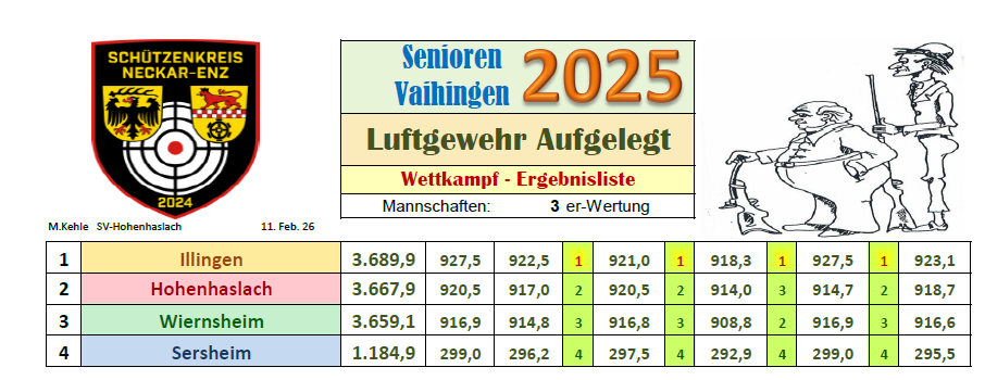 Am 11. Februar 2026 fand der vierte Wettkampf in der Seniorenrunde Luftgewehr aufgelegt in Hohenhaslach statt.